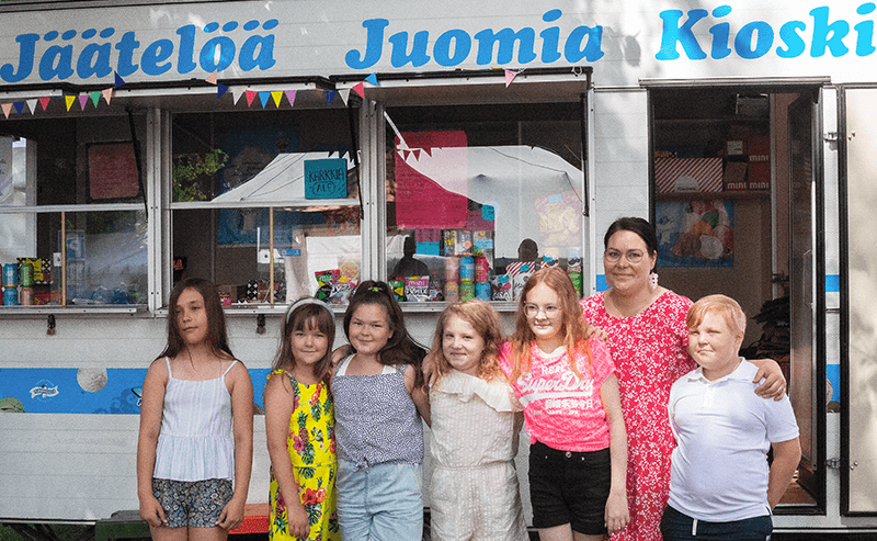Myyntiryhmät koostuivat lapsista ja nuorista. Ikähaitari oli seitsemänvuotiaista 14-vuotiaisiin. Lapset ja nuoret oppivat hetkessä käyttämään maksupäätettä. Tuotteet siirtyivät hyllyiltä ja pakastimesta vilauksessa ostajalle. Kioski avattiin heti aamulla ja suljettiin illalla viimeisenä. Uutta päivää odotettiin innolla.