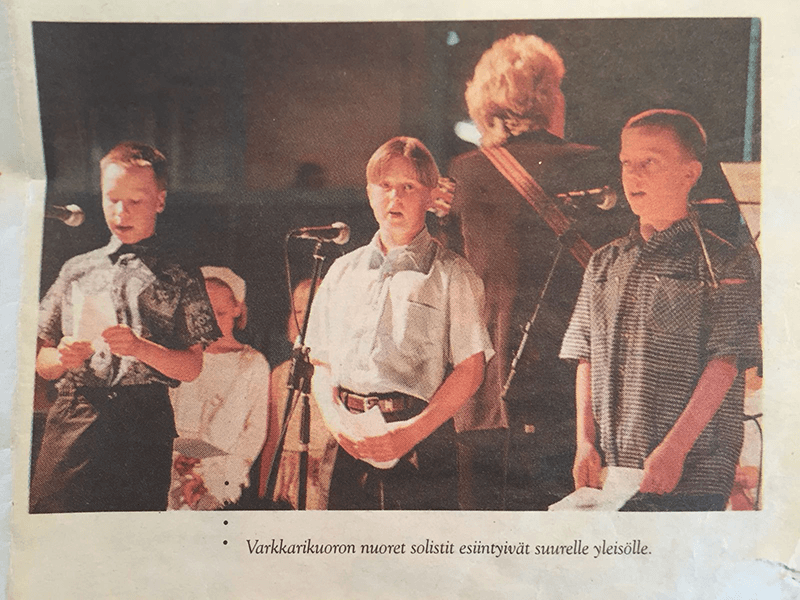 Kesäjuhlien isolla lavalla laulamassa yhdessä Juha Koivistoisen ja Aleksi Oksasen kanssa.